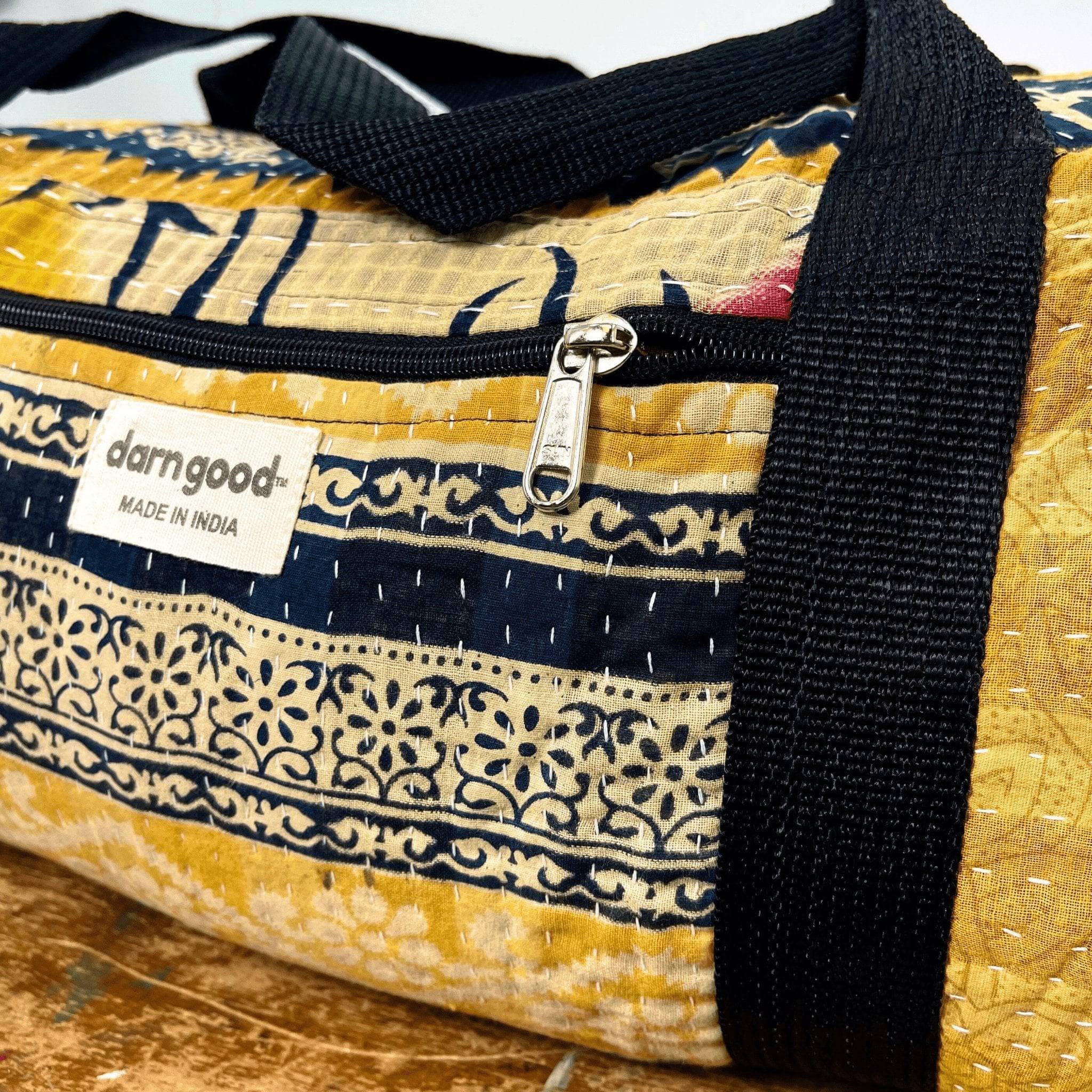 Durable and Reliable: Crafted from premium materials, our Kantha Stitched Travel Bag is built to withstand the rigors of travel. The sturdy construction ensures your belongings remain safe and secure throughout your voyage.