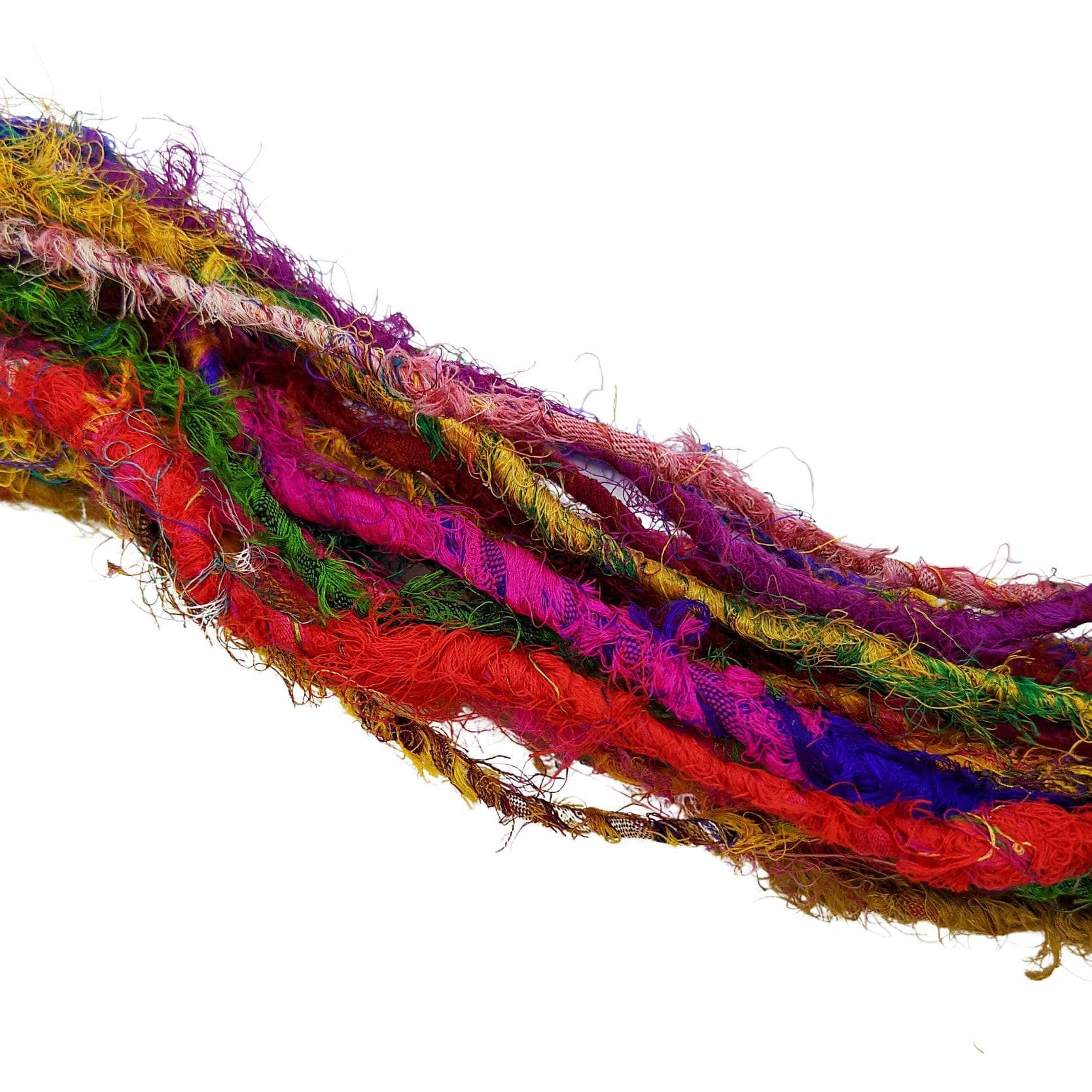 Just like the colorful, markets of New Delhi or Kathmandu are teeming with life, this yarn pops with color and texture! Artisans at co-ops in India create this yarn from reclaimed sari material.